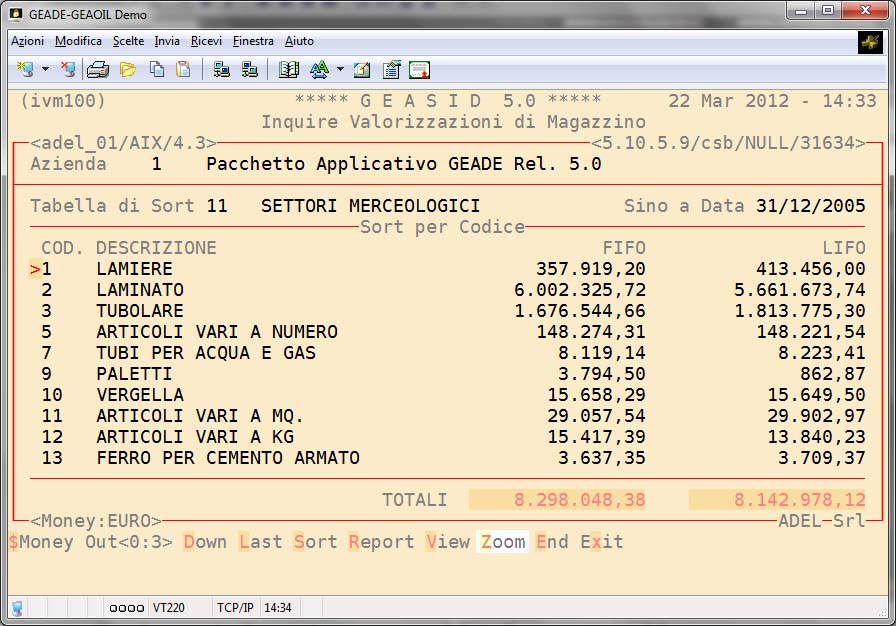 La procedura consente di elaborare e stampare la valorizzazione delle giacenze di magazzino a Ultimo Costo, Costo Medio, LIFO e FIFO.