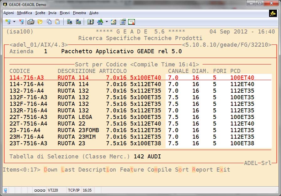 Nell'esempio sviluppato in questa pagina si fa riferimento alla codifica tecnica di ruote per autovetture.