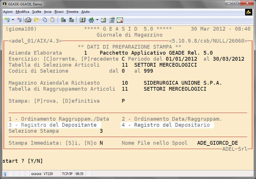 Il modulo di stampa del Giornale di Magazzino prevede la possibilità di stampare anche il Registro di Conto Deposito sia per il Depositante che per il Depositario.