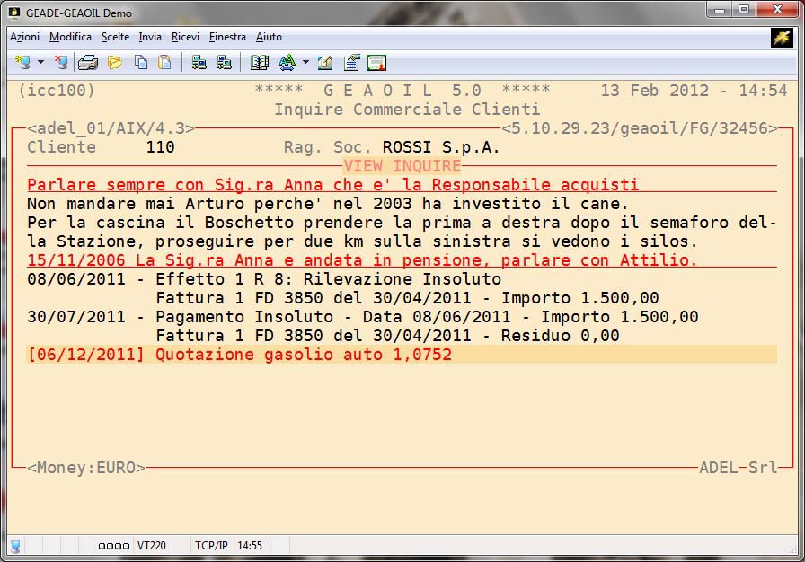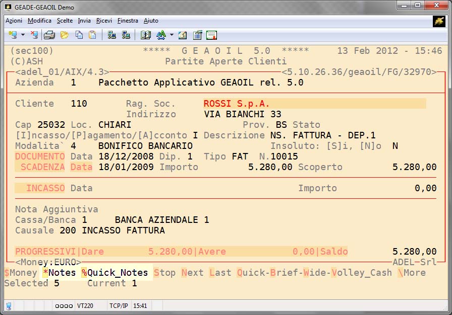 La gestione del testo inserito nelle Note, stante l'interfaccia a carattere dell'applicativo, non è propriamente assimilabile a quella di un "word processing" tradizionale, seppure siano previsti strumenti per l'evidenziazione delle informazioni (sottolineatura, lampeggio, ecc.) e la possibilità di riportare parti delle Note nei documenti emessi dall'azienda.