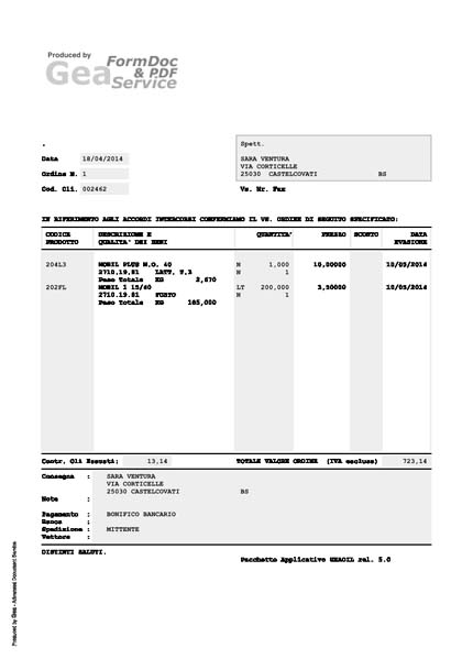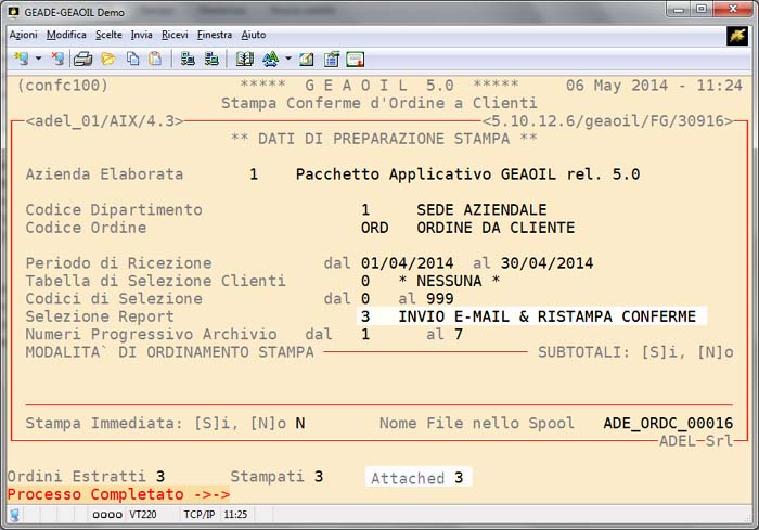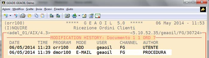 Come esempio della funzionalità della procedura sono illustrati nel seguito l'invio in modalità immediata di un Ordine a Fornitore e la predisposizione con invio successivo in modalità differita di una serie di Conferme d'Ordine a Cliente.