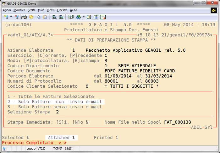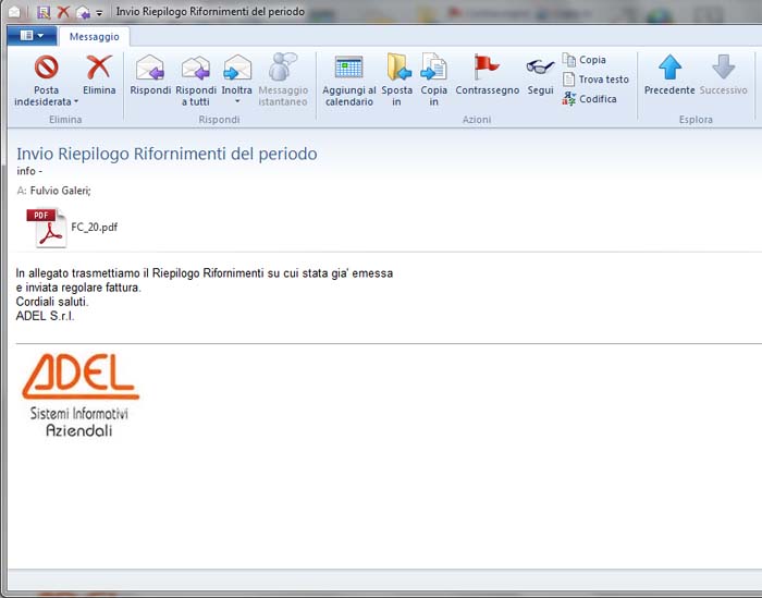 Si tratta in sostanza di una variante della procedura di mailing fatture che in presenza di un documento con la causale specifica delle fatture relative alla gestione delle carte aziendali crea e allega alla e-mail anche il riepilogo dei rifornimenti riassunti nella fattura.