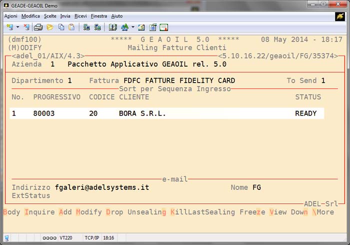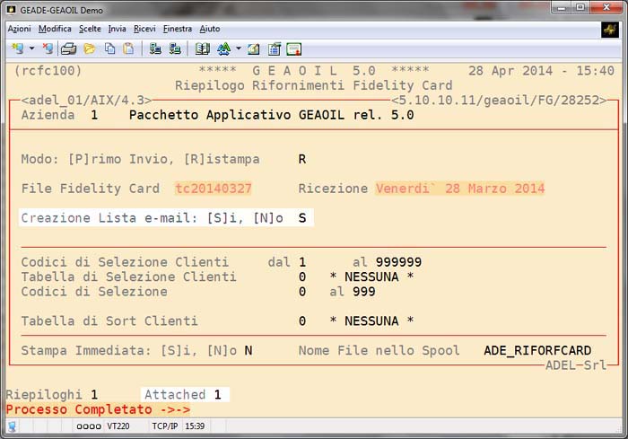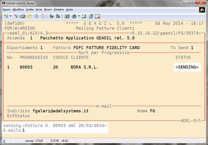La Gestione del Mailing Fidelity Card è integrata nell'ambiente gestionale e, attraverso il software Sender Mail, permetta di inviare l'originale delle fatture emesse con il collegato riepilogo rifornimenti in forma automatica ai clienti per i quali sono stati impostati i servizi (FATTURA e FIDELITY).