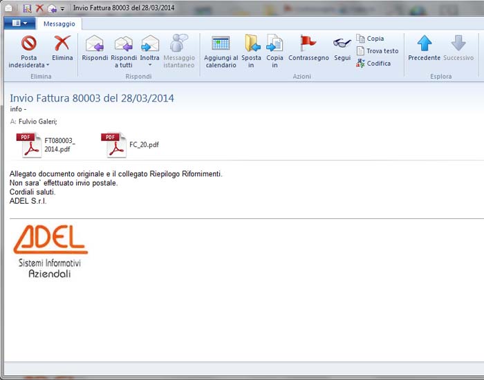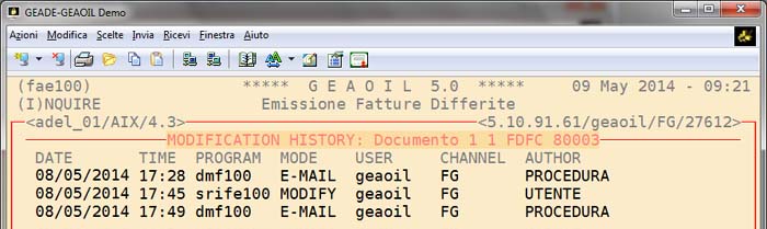 Una fattura viene inviata una sola volta, è però possibile riattivarne la spedizione mediante un apposito modulo applicativo; nella figura precedente la cronologia di un invio, una successiva riattivazione e una nuova e-mail.