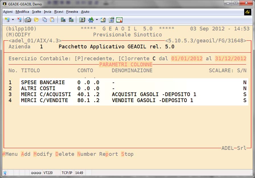 Questa sezione previsionale del Sinottico dell'Andamento Economico può essere, come numero e qualità delle colonne, liberamente impostata dall'utente.