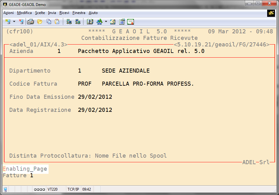 La procedura di contabilizzazione della pro-forma consente, ovviamente, di selezionare le pro-forma registrate da processare (comando Enabling_Page).