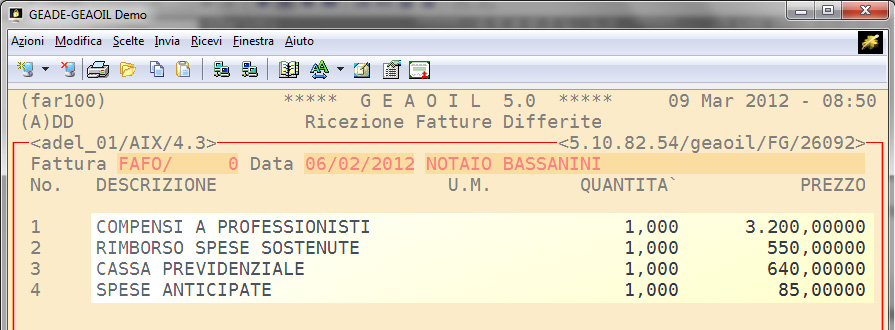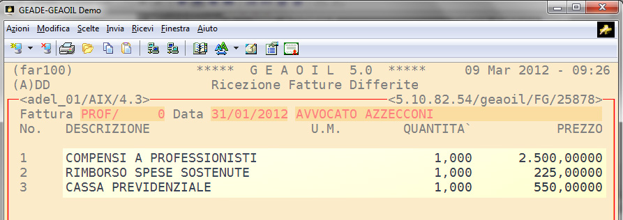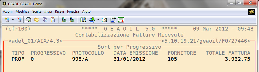 Dal punto di vista procedurale l'inserimento della pro-forma è equivalente a quello di una normale fattura passiva seppure identificata con una sigla documento diversa (nell'esempio PROF).
