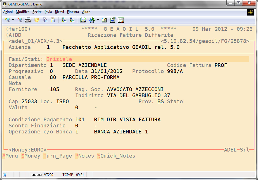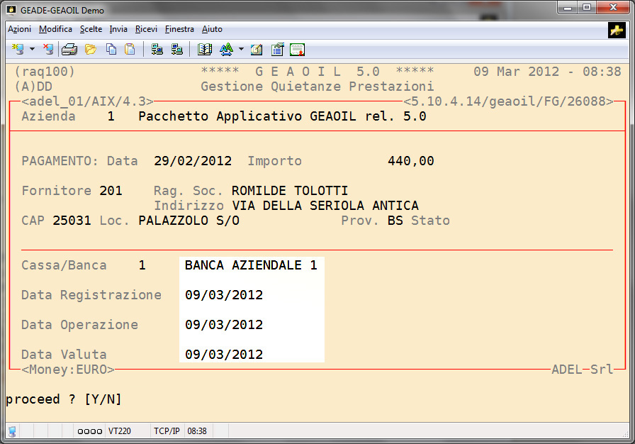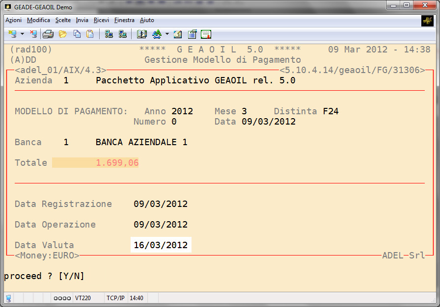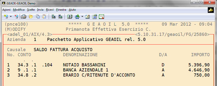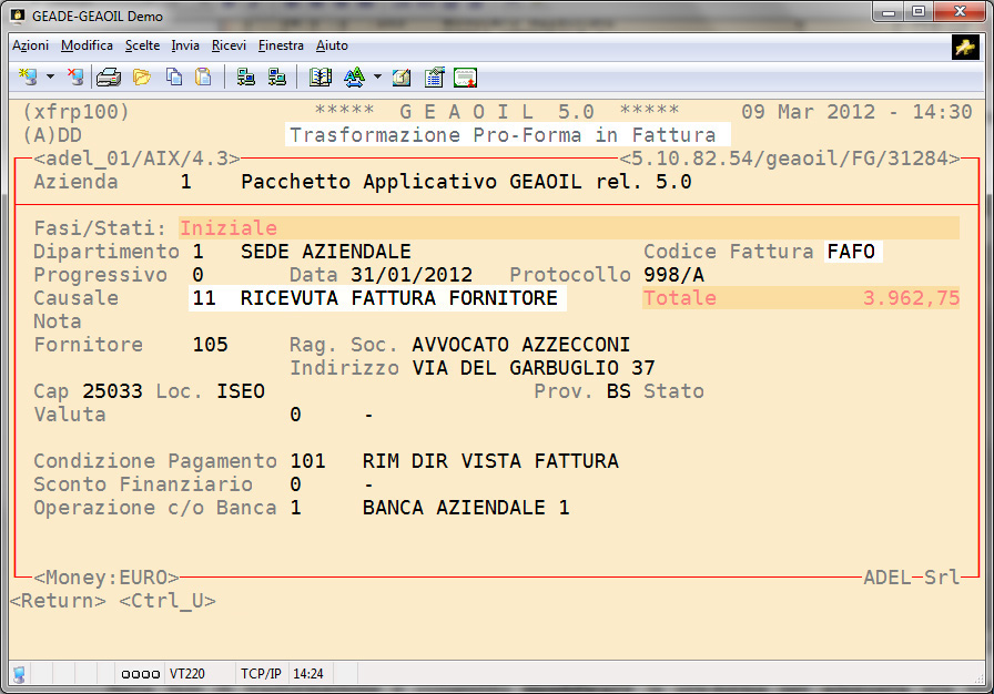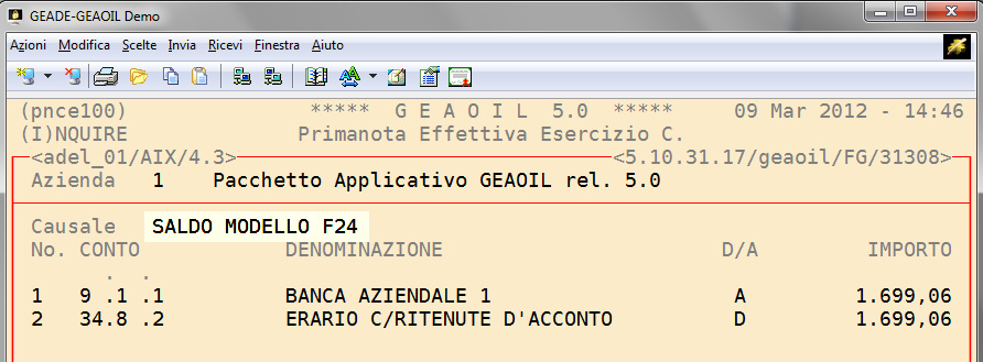 Nell'esempio fin qui sviluppato si assume che il saldo della pro-forma sia avvenuto il giorno 29 febbraio 2012.