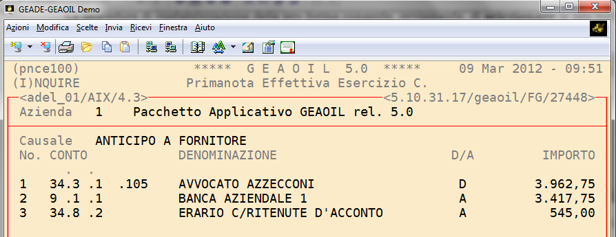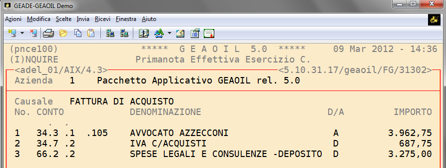 Proseguendo nell'esempio, in precedenza sviluppato, le due maschere successive illustrano il risultato contabile del saldo delle due fatture dell'agente e del professionista.