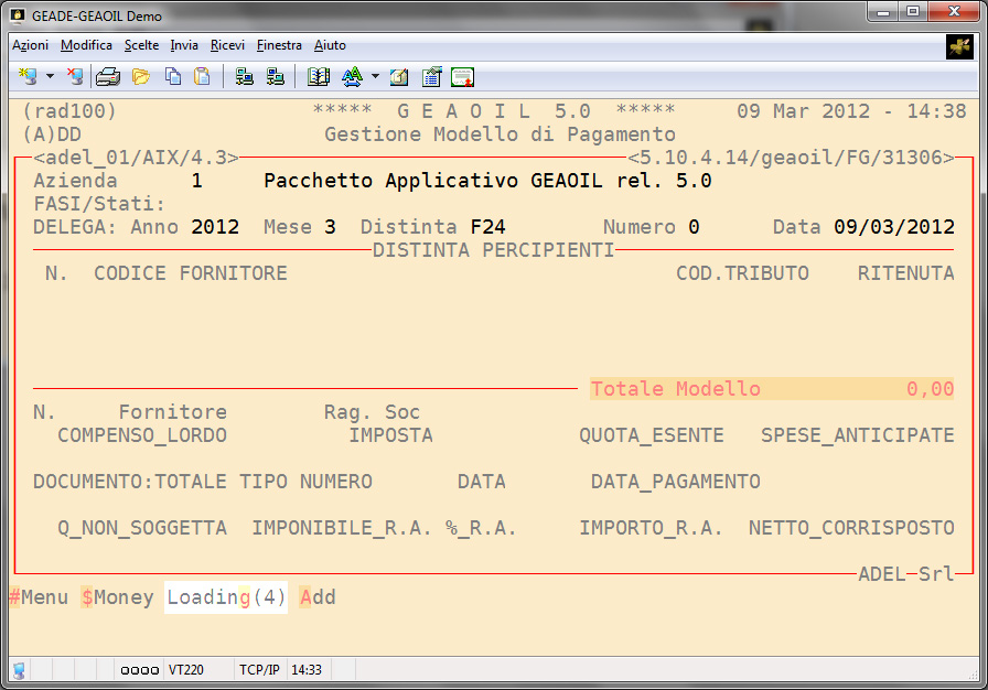 All'avvio la procedura segnala l'esistenza di ritenute da versare per il periodo indicato dall'operatore (nell'esempio il valore 4 a fianco del comando Loading).