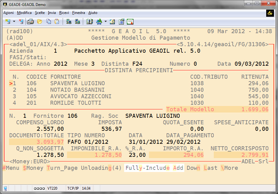 Le ritenute proposte possono essere inserite complessivamente (comando Fully) o singolarmente (comando Include).