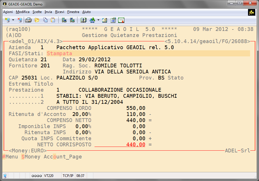 Con la normativa vigente il campo di applicazione di queste forme di collaborazione è largamente ridotto rispetto al passato, malgrado ciò la procedura è in grado di emettere la ricevuta (o notula) delle prestazioni erogate da una persona fisica uniformandone il successivo trattamento informatico a quello delle prestazioni professionali, compresa la contabilizzazione automatica del documento.