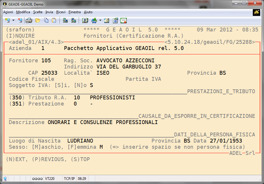 Nel secondo esempio l'inserimento visualizzato si riferisce alla fattura di un professionista in cui sono stati riportati: