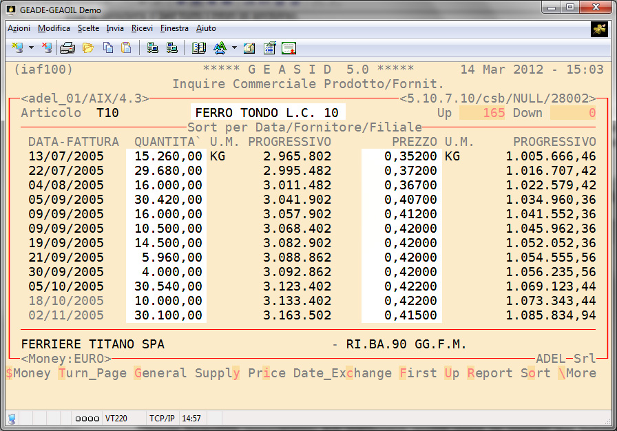 stampa media dell'acquisto per periodo e prodotto secondo l'unità di misura commerciale;