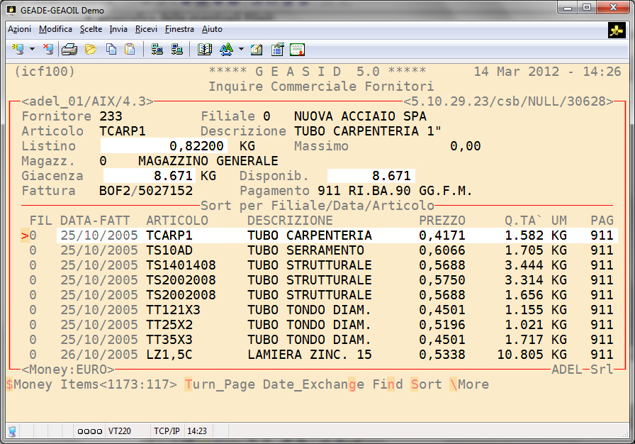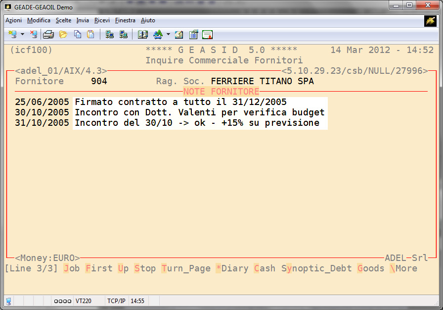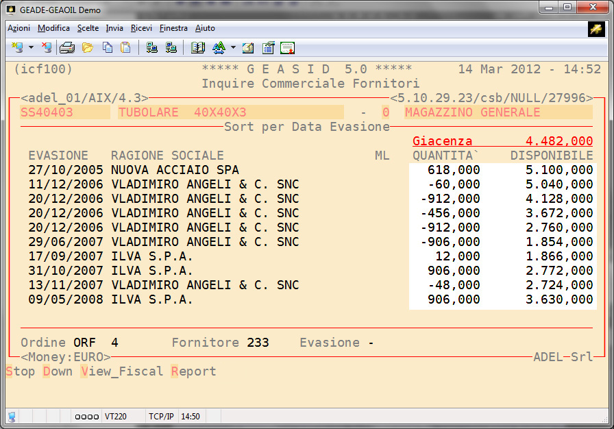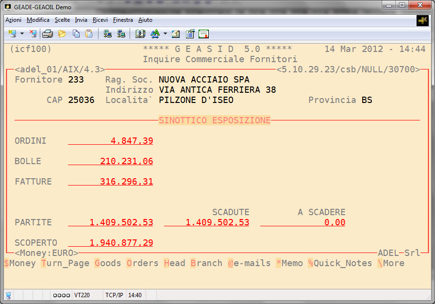 Il modulo genera una Scheda Commerciale Fornitore che consente di conoscere la situazione dei fornitori accedendo, tramite il codice ad essi assegnato o direttamente con la ragione sociale, agli archivi del Sistema Informativo.