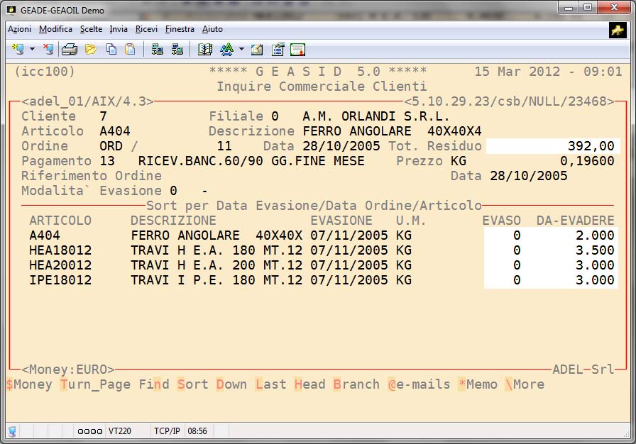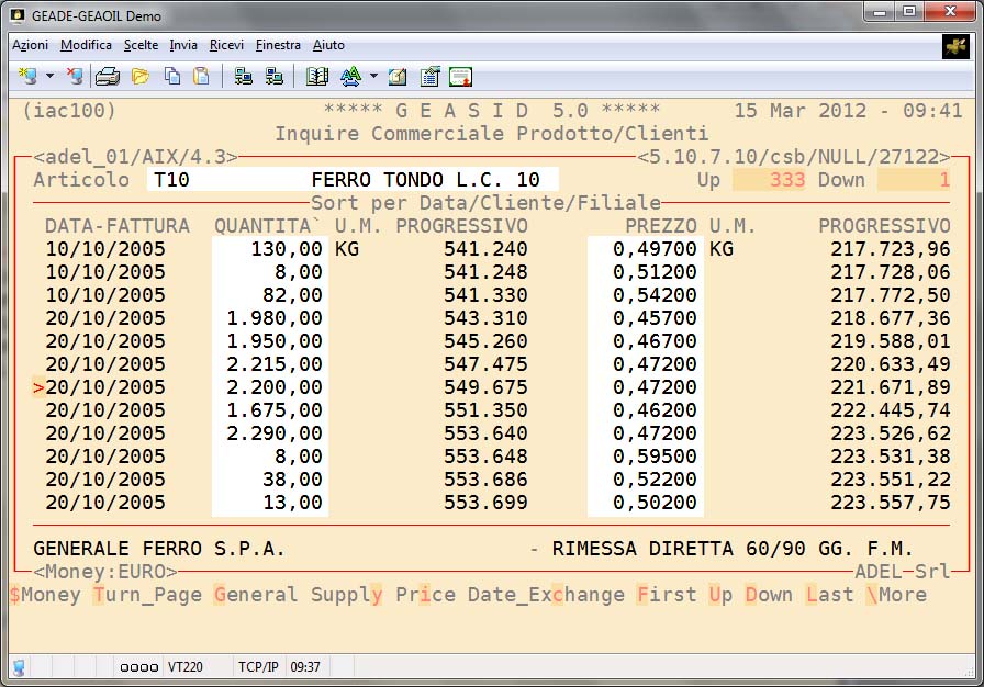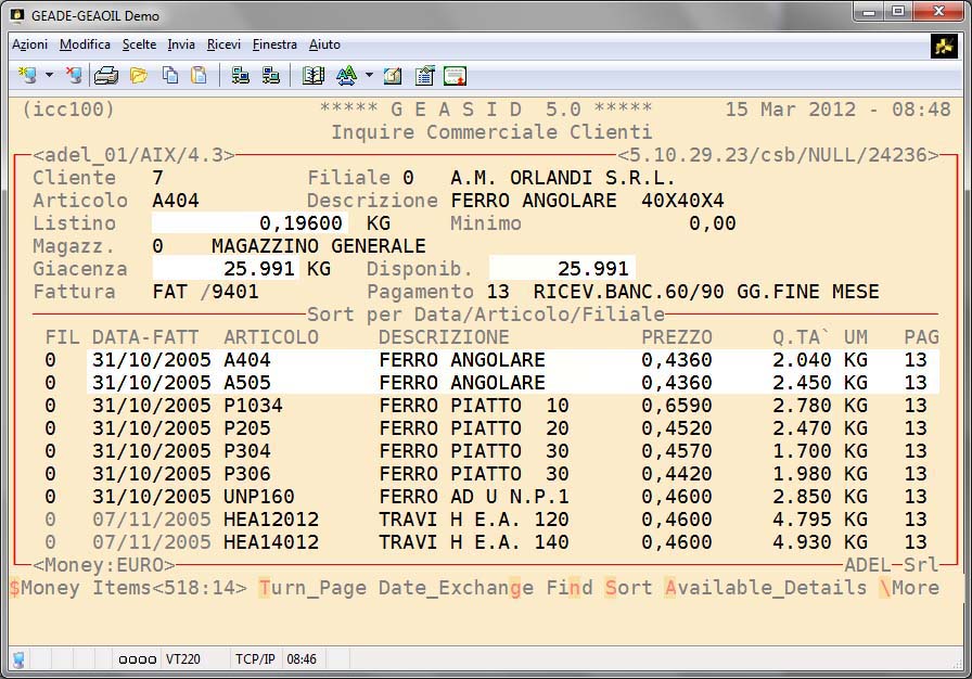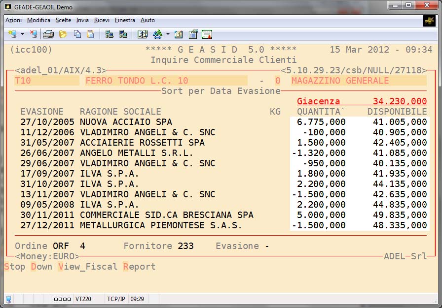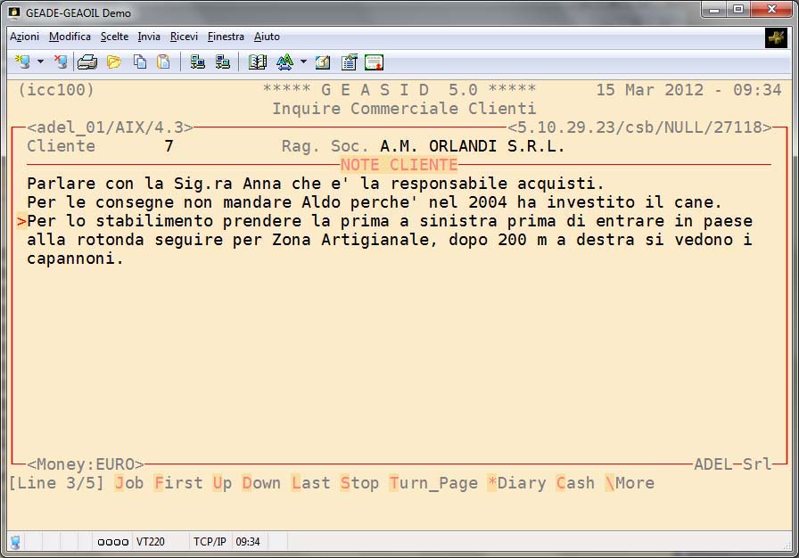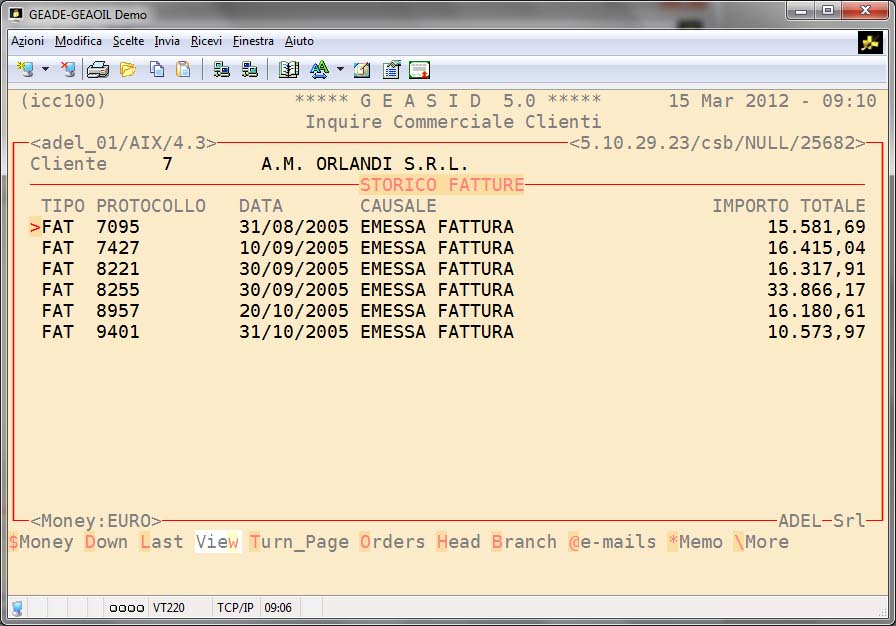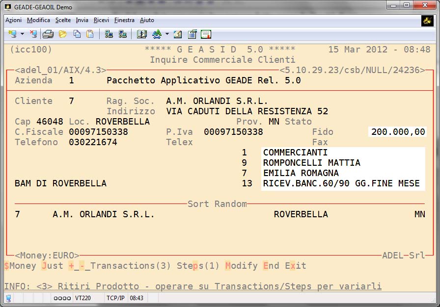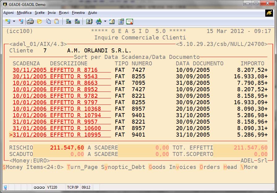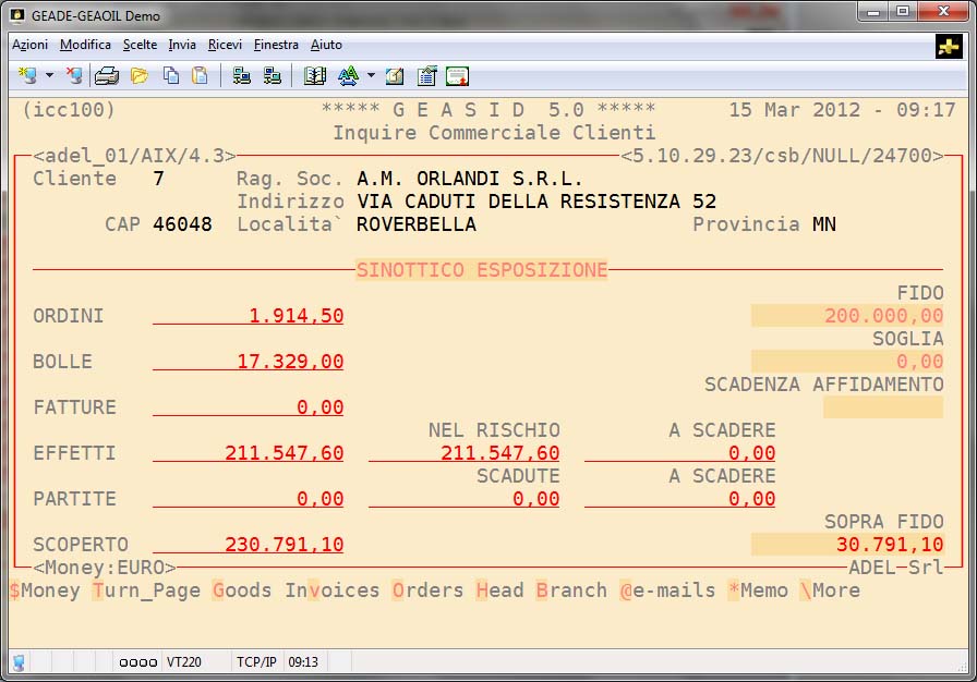 Lo stesso modulo genera una Scheda Commerciale Cliente che consente di conoscere la situazione dei clienti accedendo, tramite il codice ad essi assegnato o direttamente con la ragione sociale, agli archivi del Sistema Informativo.