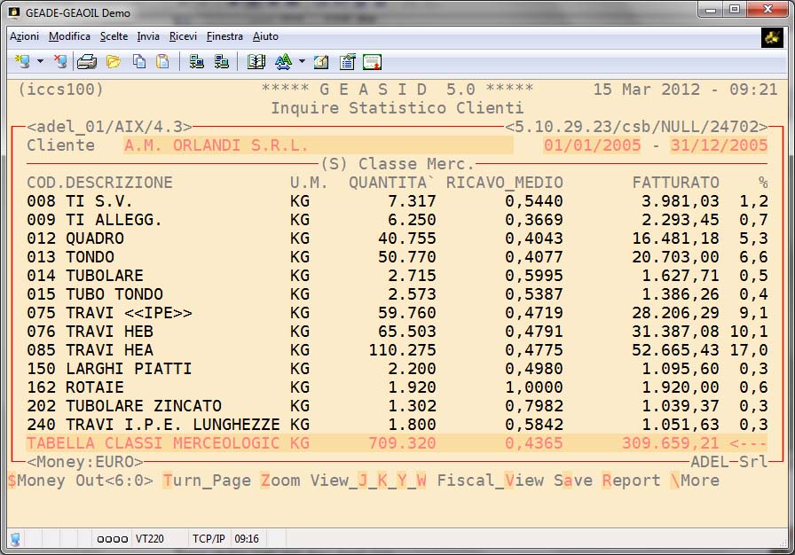 stampa media del venduto per periodo e per prodotto secondo l'unità di misura commerciale;