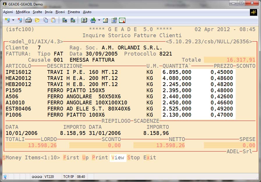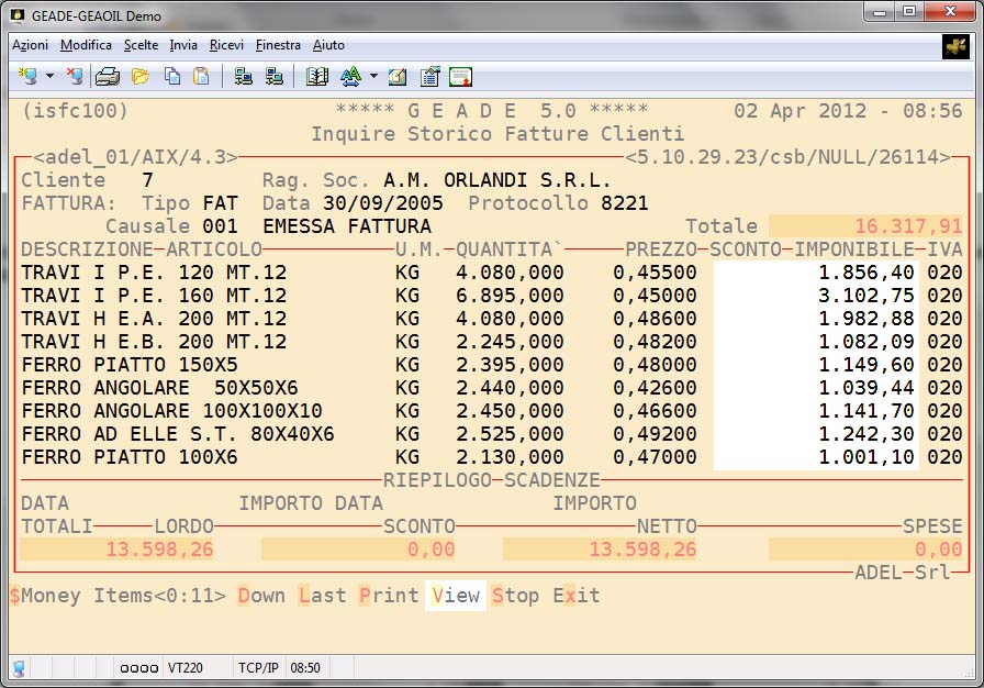 Sempre attraverso il comando View la finestra, relativa al corpo fattura, scorre verso sinistra riportando gli importi totali di ogni riga.