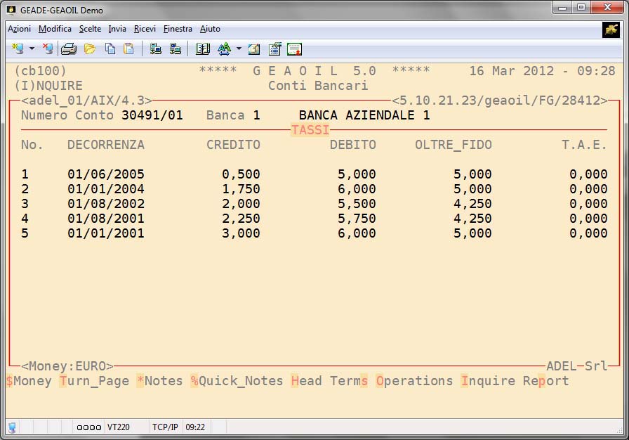 La Codifica delle Condizioni Bancarie permette la memorizzazione di tutti i parametri del rapporto di conto con l'istituto bancario (tassi, spese, valuta per le diverse tipologie di operazione).