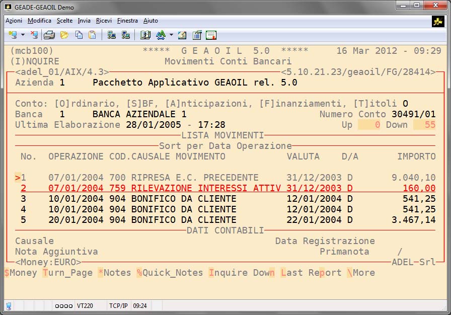 La Gestione dei Movimenti Bancari che, attraverso un'interfaccia apposita, tende a facilitare l'inserimento ed il controllo delle transazioni sulla base delle contabili ricevute.