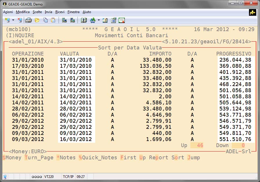 La verifica delle operazioni per data valuta risulta agevole ed immediata.