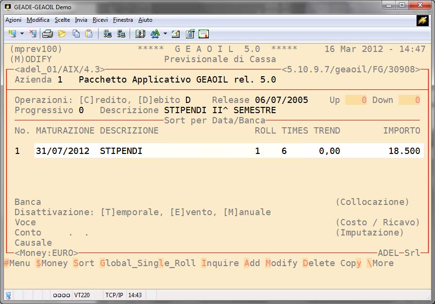 Entrambe le rappresentazioni della proiezione, tramite un tasto funzione, passano dalla visione generale dell'azienda al dettaglio per singola banca o cassa aziendale.