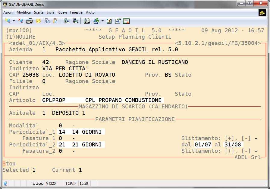 Periodicità Alternativa (es.: Bassa Stagione), con lo stesso criterio della periodicità normale e definendo il periodo alternativo normalmente legato alla stagionalità delle consegne.