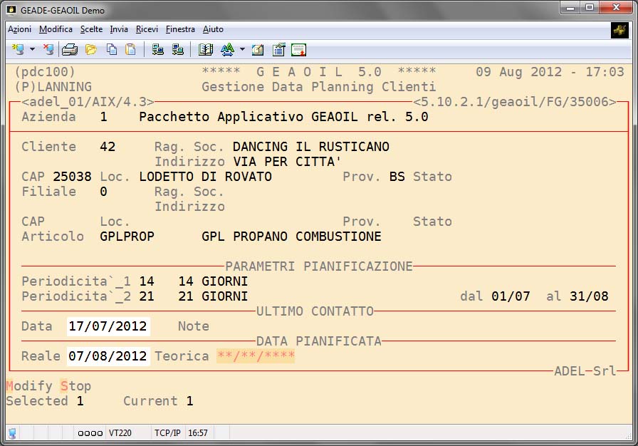Il modulo trova un impiego commerciale molto utile anche per effettuare il tele marketing (telefonate con cadenze programmate alla clientela che presenta consumi relativamente costanti nel tempo di prodotti come, ad esempio, il gasolio nel settore trasporti o i combustibili utilizzati in processi industriali continui) ed è applicabile anche a settori commerciali diversi dalla distribuzione di prodotti petroliferi.