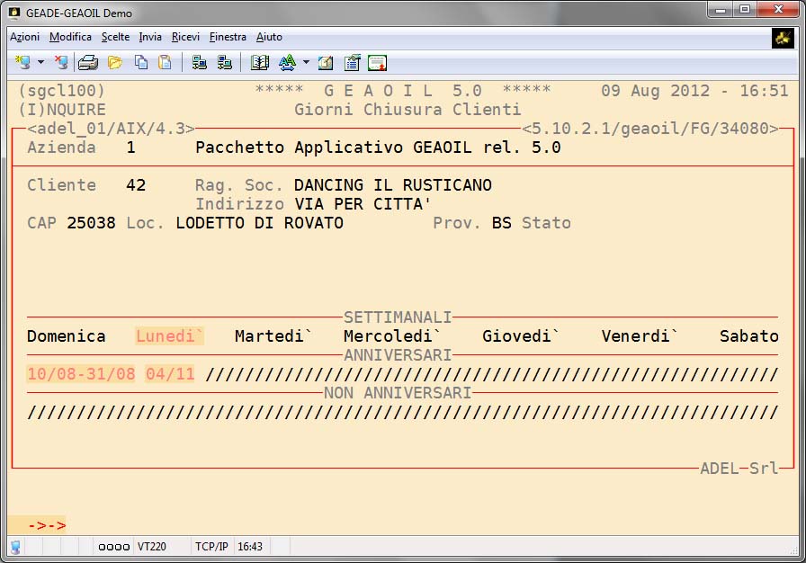 Per ogni Cliente vanno predisposti i parametri fissi della programmazione: