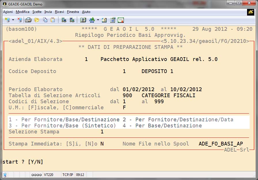 Riepilogo carichi per Base di Approvvigionamento, con le seguenti opzioni: