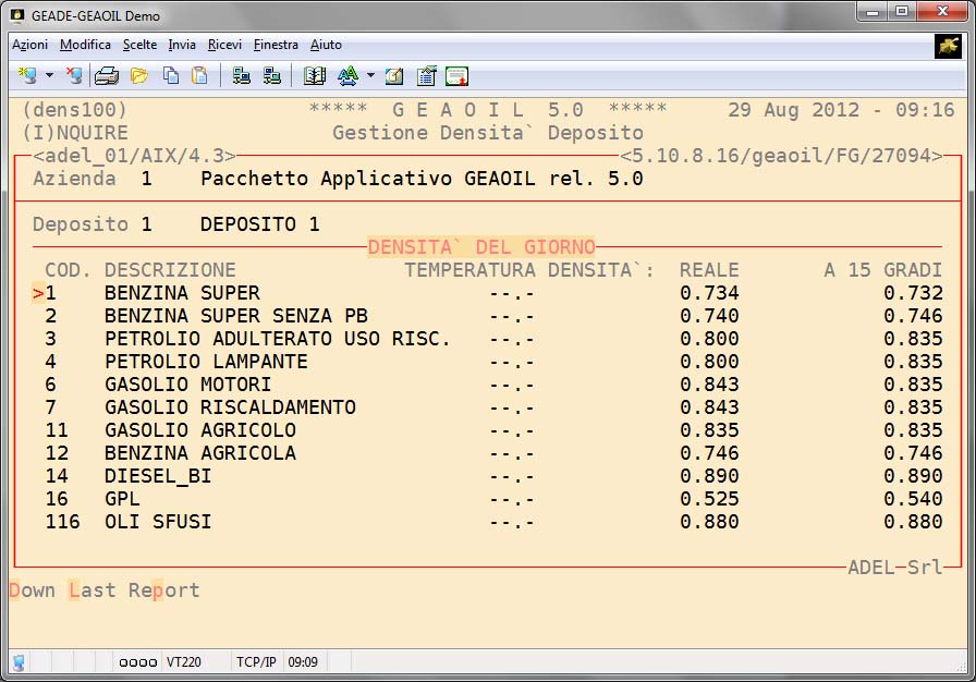 - gestione delle densità a 15 °C e reale dei prodotti sfusi;