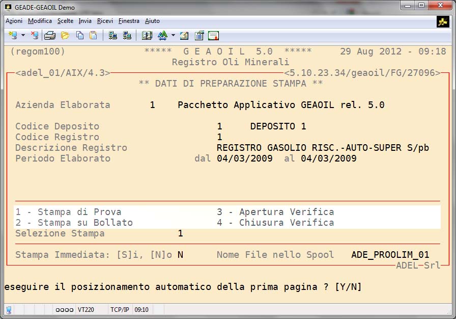 stampa dei registri di carico e scarico così come richiesto dalla Circolare del Ministro delle Finanze (prot. n. 4651/85) ed approvati dall'UTF oppure, in alternativa (o contemporaneamente), di un brogliaccio per tenuta manuale del Registro UTF.