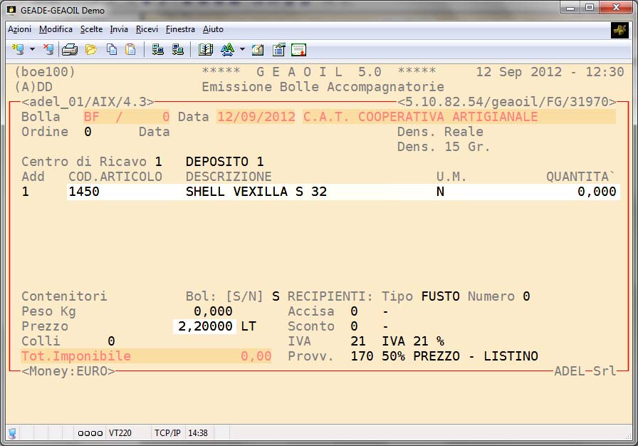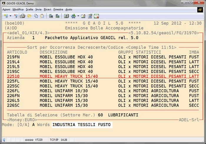 Selezionato l'articolo (nell'esempio 1450) il comando Export trasferisce automaticamente il codice nel documento in elaborazione.
