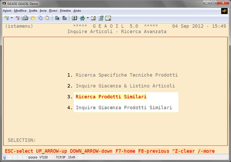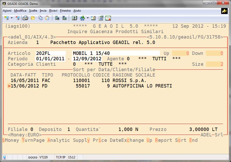 Nella figura successiva una sequenza di selezione dei prodotti con giacenza, di analisi dei prezzi, di scelta e di verifica degli ordini pendenti.