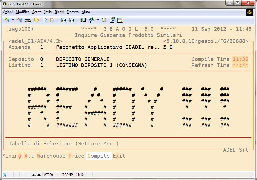 Al primo avvio giornaliero la procedura compila automaticamente la mappa di ricerca che potrà essere ricreata, in presenza di inserimento di nuovi prodotti o modifica dei dati prodotti esistenti mediante il comando Compile.