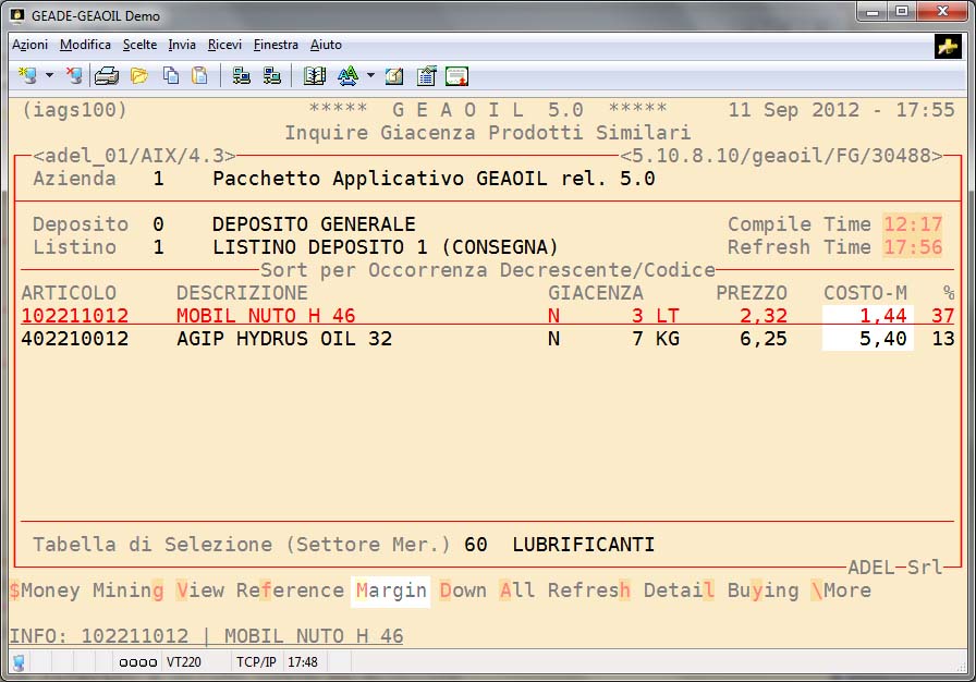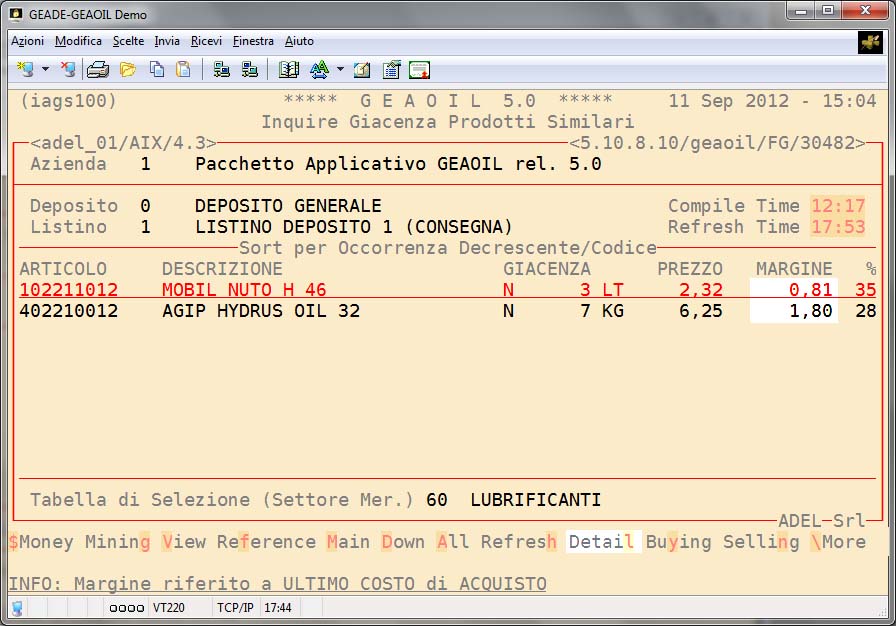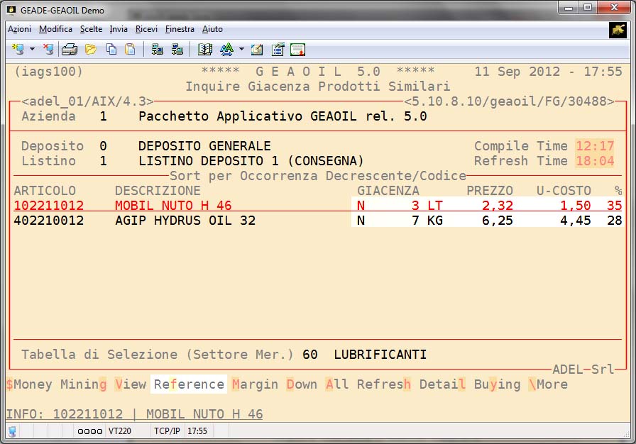 Nella colonna relativa al costo, e nel corrispondente margine percentuale calcolato, sono visualizzate alternativamente le informazioni presenti in archivio relative a valore unitario medio o ultimo di acquisto, la rotazione avviene mediante il comando Reference.
