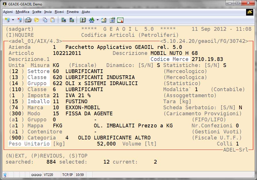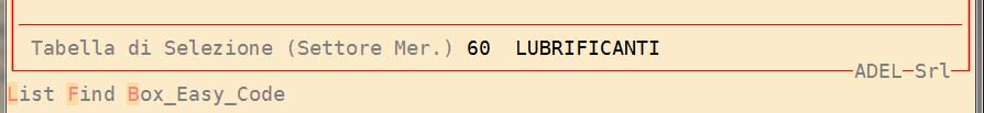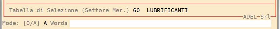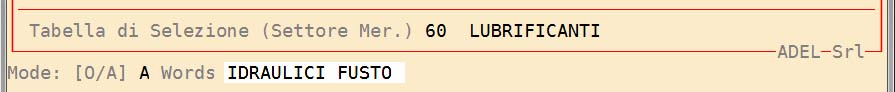 Il campo settore merceologico è stabilito come elemento primario di riduzione della ricerca e viene predisposto automaticamente sul codice relativo agli oli lubrificanti.