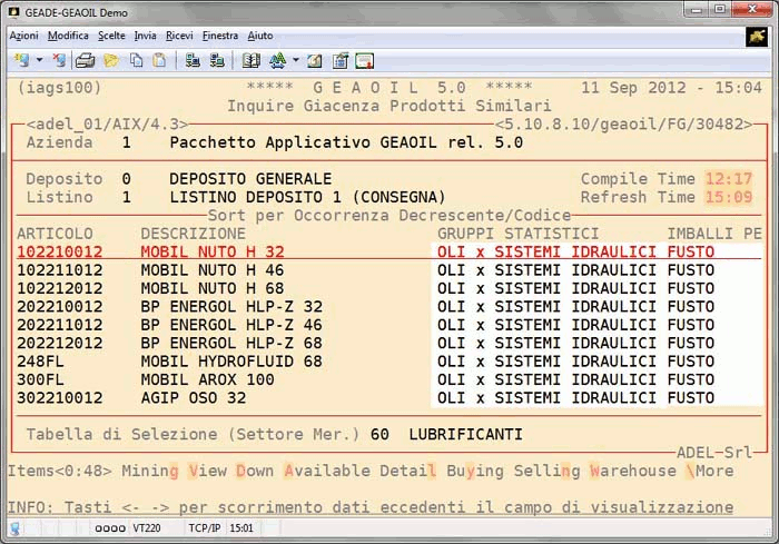 Un altro esempio di ricerca e di analisi delle informazioni disponibili: si vogliono visualizzare gli oli idraulici confezionati in fusto.