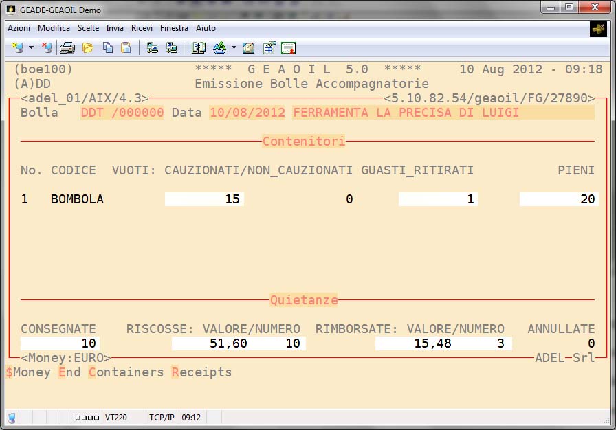 La rilevazione della movimentazione dei vuoti, delle quietanze consegnate o riscosse con l'aggiornamento del conseguente saldo delle cauzioni, si opera attraverso la normale gestione dei documenti di consegna sia alla partenza che al rientro dell'automezzo.