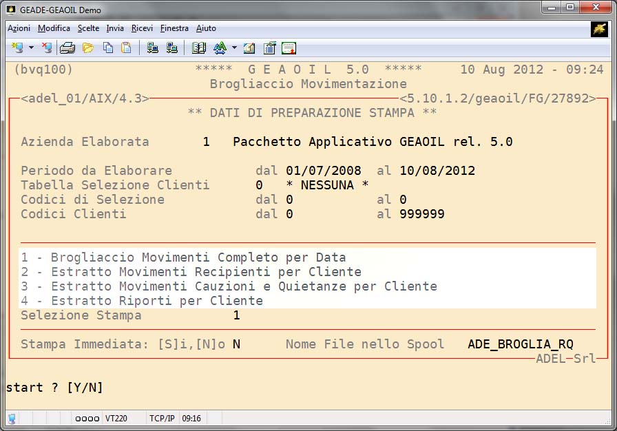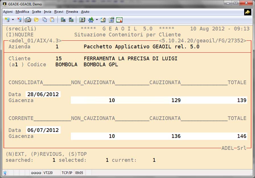 - Estratto Movimento Recipienti per Cliente: riepiloga la movimentazione dei recipienti (bombole) nelle varie pezzature per ogni cliente.