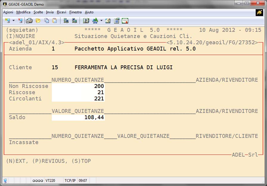 - Rendiconto Mensile Quietanze: prospetto mensile riassuntivo da far sottoscrivere al cliente rivenditore.