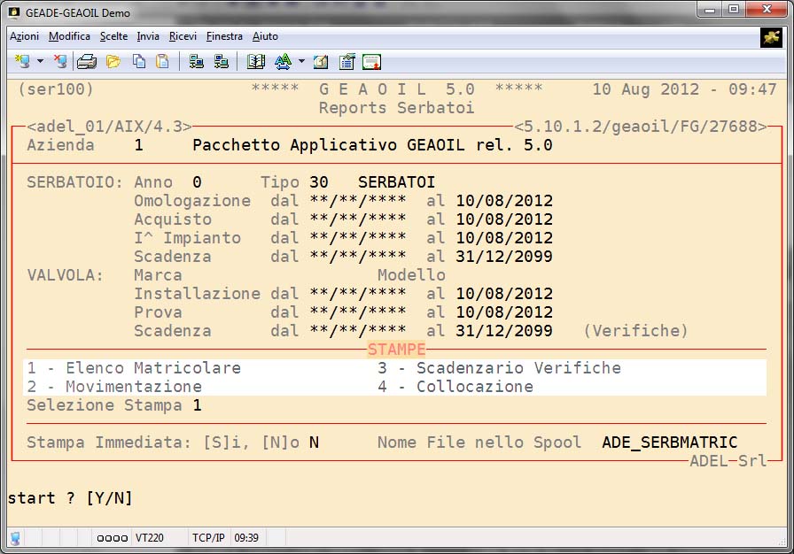 Movimentazione Serbatoi (Acquisti, Collocazioni, Rientri, Inventario e Disponibilità).