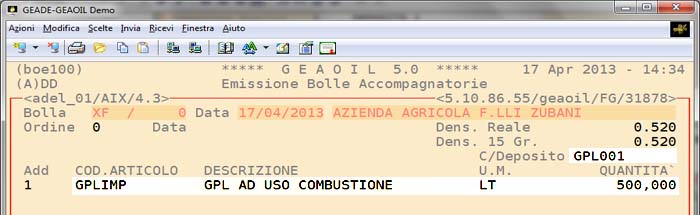 il codice GPLIMP si riferisce al prodotto vero e proprio consegnato in litri all'impianto;