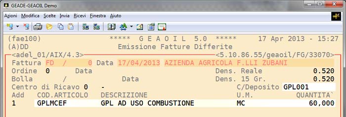 La versatilità della procedura consente di gestire la movimentazione commerciale e fiscale di proprio prodotto depositato presso l'utente finale, nell'esempio della pagina gas propano liquido, venduto con fatturazione a consumo, in modo agevole e senza la necessità di doppi inserimenti delle transazioni.