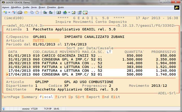 L'analisi della movimentazione di un Conto Deposito puo essere agevolmente eseguita con l'apposita procedura di Inquire Movimenti Conto Deposito.