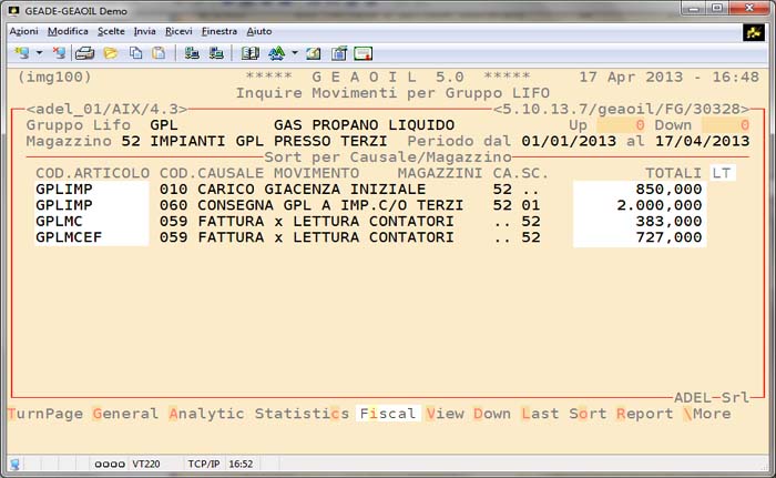 Il deposito aziendale di movimentazione sarà unico e in grado di riepilogare l'intera gestione degli impianti aventi questa caratteristica, nell'esempio della figura successiva denominato: Impianti GPL presso terzi.