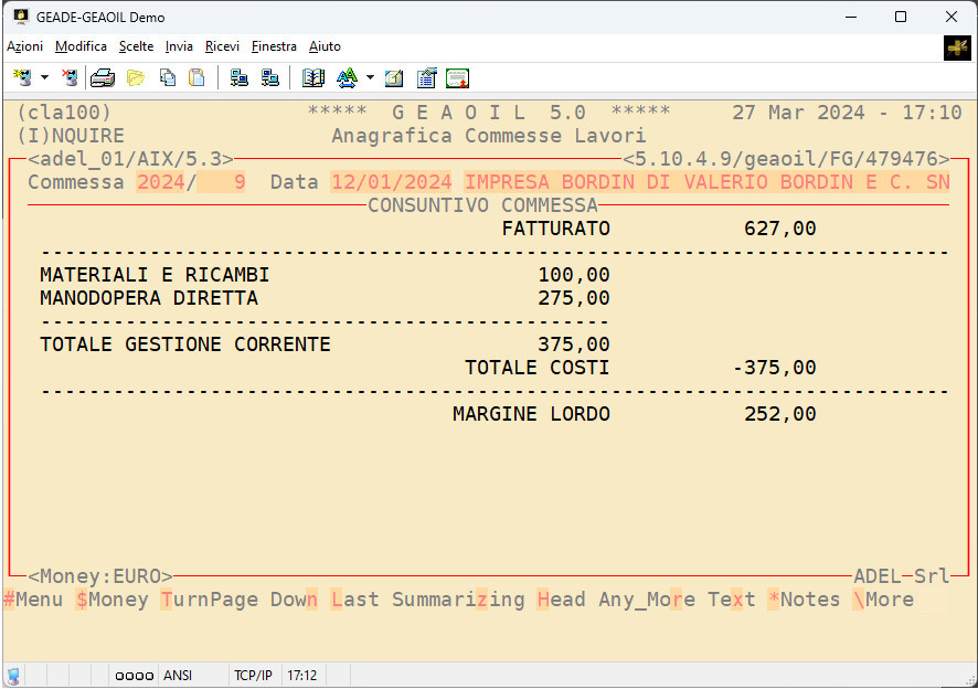 La procedura è in grado di produrre la rendicontazione gestionale e la redditività di una Commessa o di un Ordine di Lavoro.