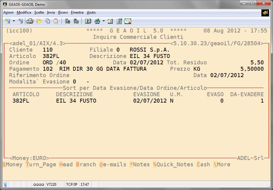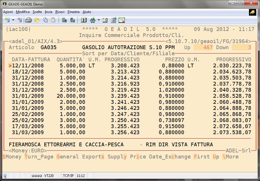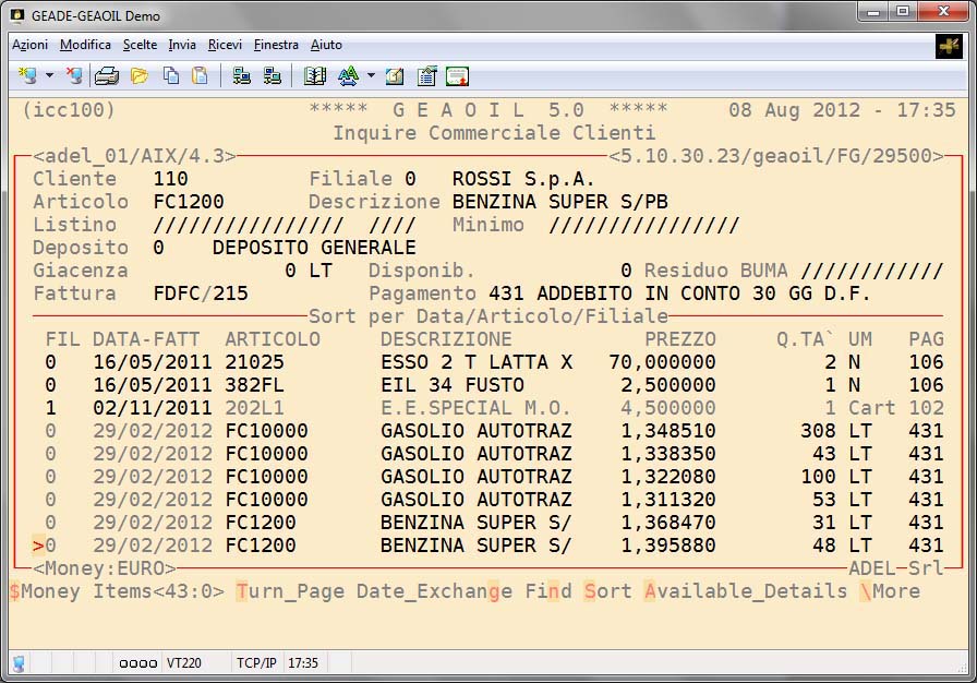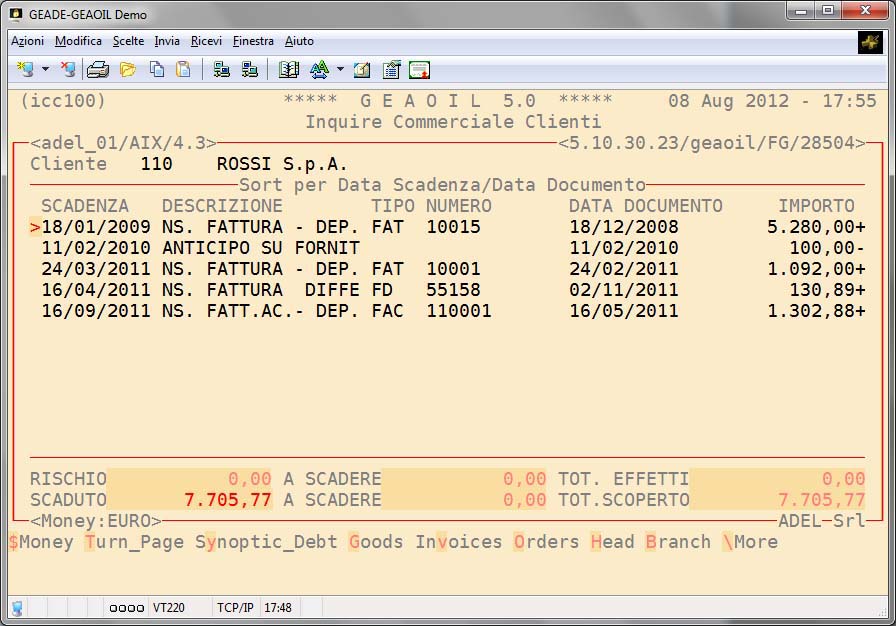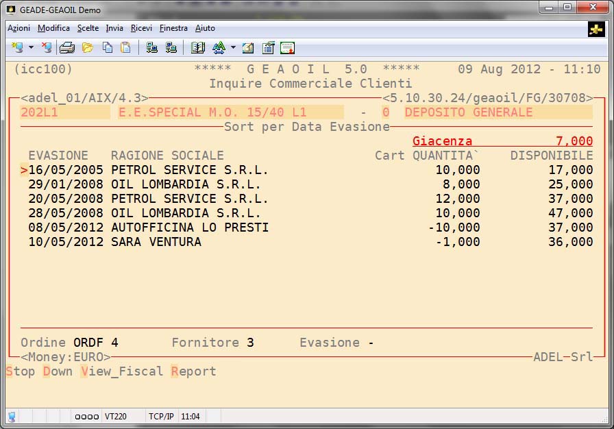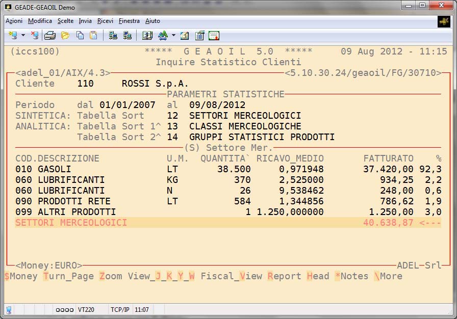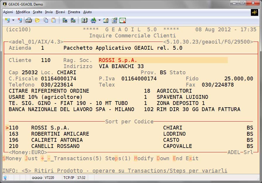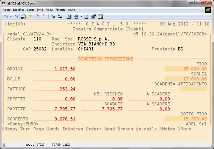 Lo stesso modulo genera una Scheda Commerciale Cliente che consente di conoscere la situazione dei clienti accedendo, tramite il codice ad essi assegnato o direttamente con la ragione sociale, agli archivi del Sistema Informativo.