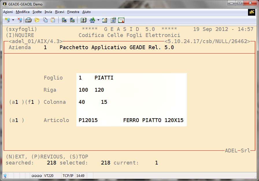 Ad ogni cella è associato un codice prodotto ed il contenuto della stessa ne indica la disponibilità corrente (in tonnellate).